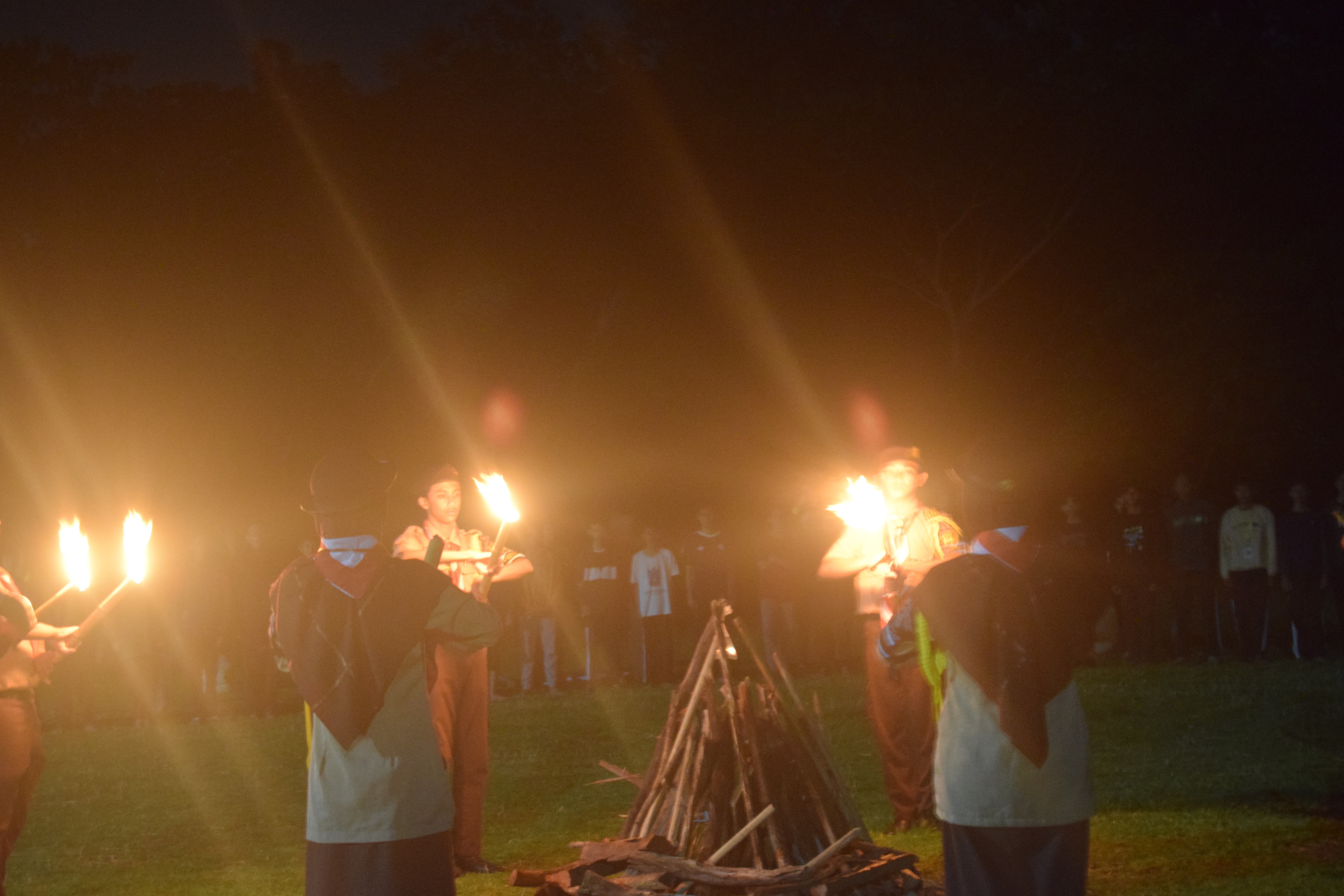 Masuk ke kegiatan yang paling ditunggu-tunggu oleh banyak orang, yaitu pelaksanaan api unggun. Dalam pramuka, api unggun dimaknai sebagai simbol kebersamaan antarsesama anggota kepramukaan. Api unggun mengandung makna yang mendalam, yakni semangat yang membara. Api unggun dinyalakan oleh pembawa Api Darma. Pembawa Api Darma membawakan obor yang nantinya akan diberi api oleh Sang Ratu. Pembawa Api Darmapun menyalakan Api Unggun sembari mengucapkan Dasa Darma Pramuka, dan menyanyikan lagu “Api Unggun” bersama juga terdapat pertunjukan PENSI oleh beberapa sangga serta keseruan-keseruan lainnya. Dan acara yang terakhir yaitu terdapat upacara pelantikan kenaikan tingkat menuju Bantara.